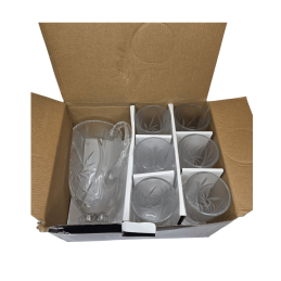 Šis elegantiškas stiklo rinkinys puikiai tinka tiek kasdieniam naudojimui, tiek šventėms. Skaidrus, dekoruotas ąsotis ir šešios derančio dizaino stiklinės suteiks stalui išskirtinumo. Reljefiniai, matiniu raštu puošiami paviršiai suteikia indams prabangos įspūdį, o tvirtas stiklas užtikrina patikimą naudojimą.