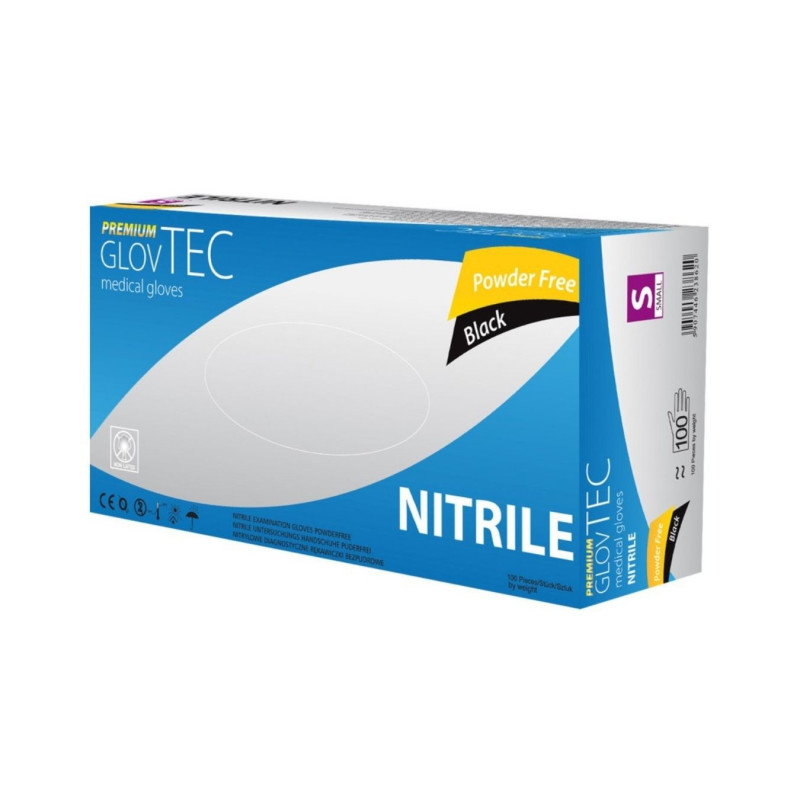 Premium GLOVTEC nitrilinės medicininės pirštinės, juodos, S dydis