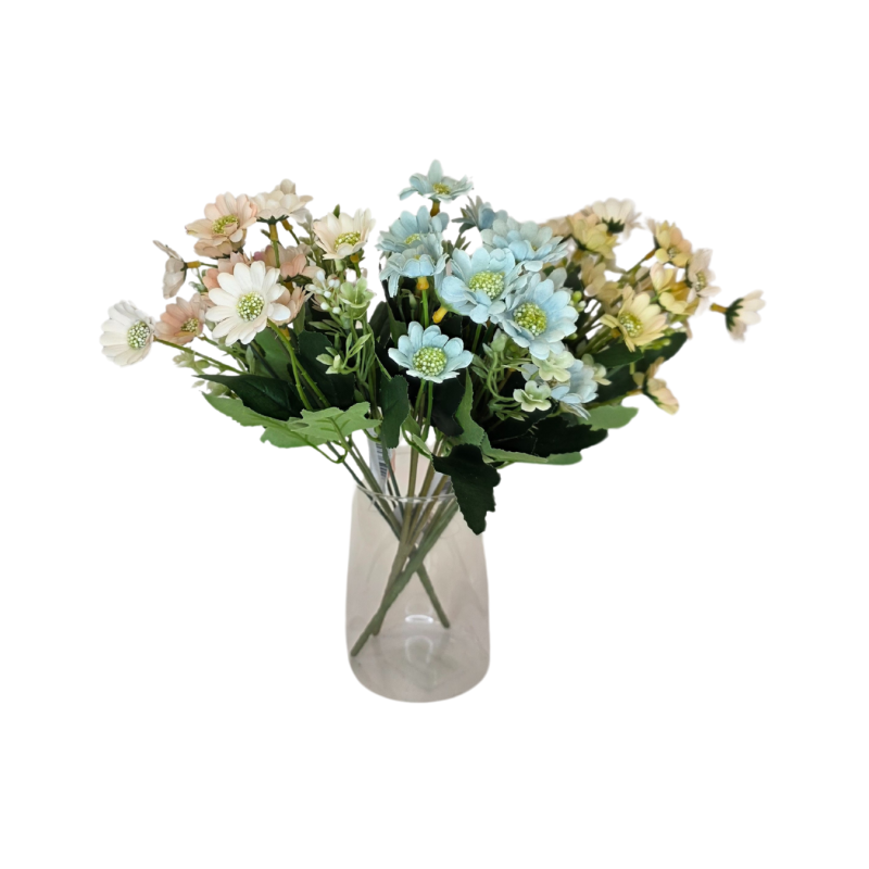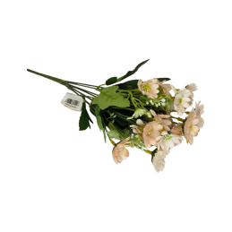 Subtili dirbtinių gėlių puokštė švelnios pastelinės spalvos. Kruopščiai pagaminti žiedai atrodo itin natūraliai ir suteikia interjerui šilumos bei elegancijos. Puikiai tinka dekoruoti vazas, stalus ar dovanų kompozicijas.