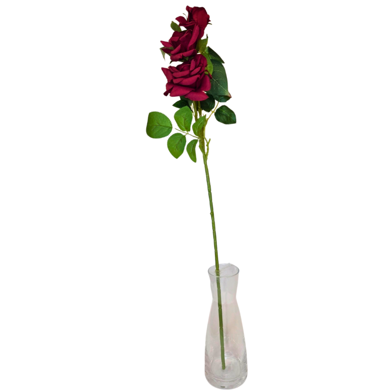 Dirbtinė rožės šakelė – dekoratyvinė gėlė interjerui. Natūraliai atrodantys žiedai ir lapai suteikia elegancijos bei jaukumo bet kuriai erdvei. Ilgas, stabilus kotelis leidžia lengvai komponuoti vazose ar gėlių kompozicijose. Tinka naudoti namuose, biure, vitrinose ar šventinėms dekoracijoms. Nereikalauja priežiūros, išlaiko estetinę išvaizdą visus metus.