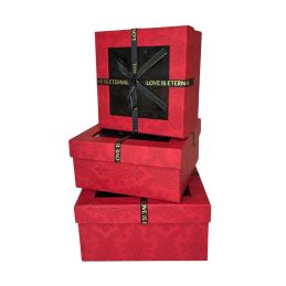 Prabangi dovanų dėžutė su langeliu ir juodu kaspinu – elegantiškas pasirinkimas ypatingai progai. Raudona dėžutės spalva su subtiliu ornamentu derinama su juodu kaspinu, puoštame auksiniu užrašu LOVE IS ETERNAL, kuris suteikia išskirtinumo ir prabangos pojūtį. Dėžutės langelis leidžia matyti viduje esančią dovaną.