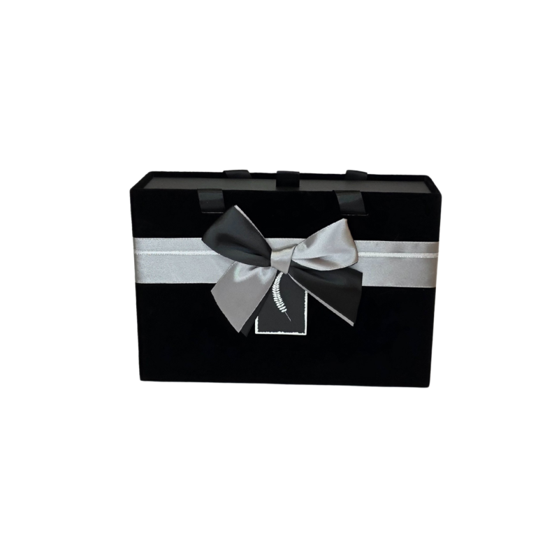 Elegantiška juodos ir sidabrinės spalvos dovanų dėžutė – prabangus pasirinkimas ypatingoms progoms. Dėžutė puošta dviejų atspalvių atlasiniu kaspinu, kuris suteikia išskirtinumo ir stiliaus.