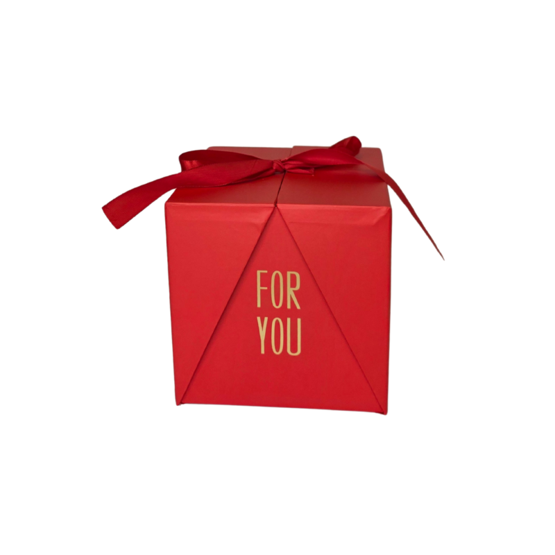 Stilinga raudona dovanų dėžutė su atlasiniu kaspinu ir užrašu FOR YOU – puikus pasirinkimas dovanai, kurią norite pateikti su išskirtiniu dėmesiu. Ryški spalva ir auksinis užrašas suteikia šventiškumo bei elegancijos. Dėžutė pagaminta iš tvirto kartono, lengvai surenkama ir paruošta naudoti be papildomo įpakavimo.
