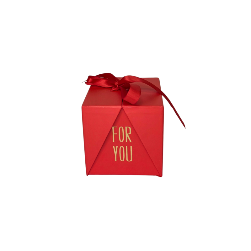 Stilinga raudona dovanų dėžutė su atlasiniu kaspinu ir užrašu FOR YOU – puikus pasirinkimas dovanai, kurią norite pateikti su išskirtiniu dėmesiu. Ryški spalva ir auksinis užrašas suteikia šventiškumo bei elegancijos. Dėžutė pagaminta iš tvirto kartono, lengvai surenkama ir paruošta naudoti be papildomo įpakavimo.
