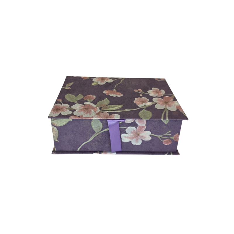 Elegantiška kartoninė dėžutė su subtiliu gėlių raštu. Tinka dovanoms, aksesuarams, smulkiems daiktams ar interjero organizavimui. Dėžutė turi atverčiamą dangtį ir dekoratyvinę juostelę patogiam atidarymui.