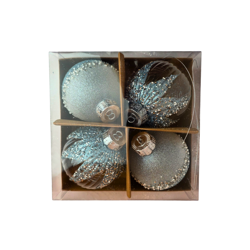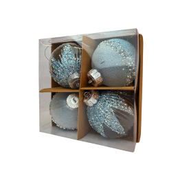 Kalėdiniai eglutės žaisliukai – elegantiškas ir šventiškas pasirinkimas jūsų eglutės puošybai. Šviesiai mėlynos ir sidabrinės spalvos tonai kartu su blizgučiais bei perliškais akcentais sukuria išskirtinį žiemos šaltuko efektą. Žaisliukai dailiai spindi šviesoje, suteikdami eglutei subtilaus prabangumo ir šventinės nuotaikos. Supakuoti stilingoje dėžutėje – puiki dovanos ar dekoracijos idėja.