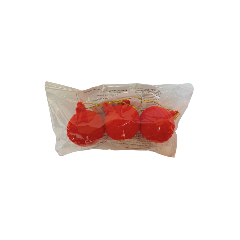 Šie minkšti, ryškiai raudoni dekoratyviniai kamuoliukai – puikus akcentas įvairioms kalėdinėms dekoracijoms. Jie turi auksinę pakabinimo virvelę, todėl lengvai tvirtinami prie eglutės, vainikų, dovanų pakuočių ar kitų šventinių kompozicijų.