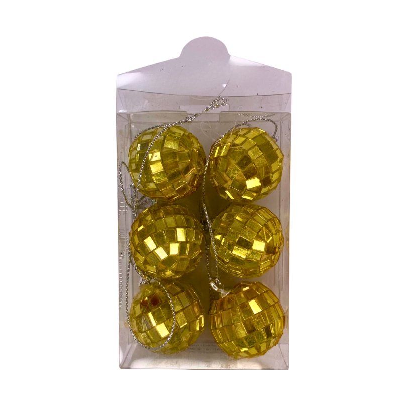 Šventiškos, ryškios ir akį traukiančios – šios auksinės veidrodinės eglutės dekoracijos puikiai papildys bet kokį kalėdinį interjerą. Kiekvienas burbulas padengtas mažomis blizgiomis mozaikinėmis plokštelėmis, kurios atspindi šviesą ir sukuria žaismingą „diskotekos“ efektą.