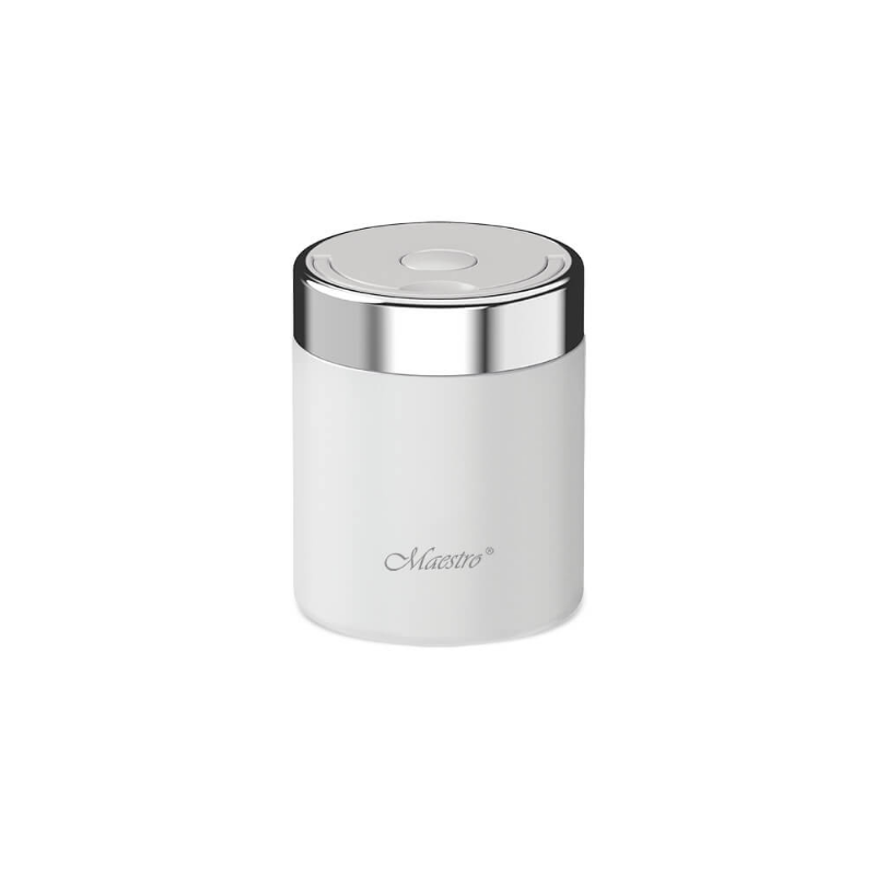 Šis „Maestro“ termosas (MR-1649-75-WHITE) yra apvalios formos su dangčiu, skirtas maistui. Pagrindinė korpuso medžiaga yra nerūdijantis plienas, o rankenų ir išorinio dangtelio medžiaga – plastikas.