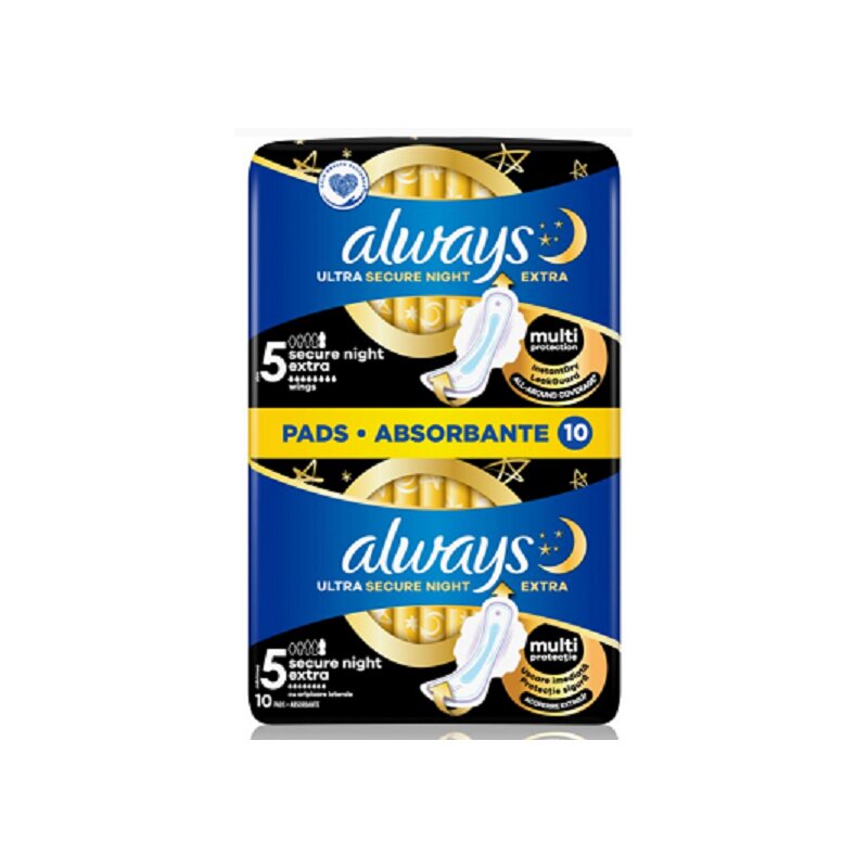 „ALWAYS Ultra Super Night“ (5 dydis) paketai yra specialiai sukurti užtikrinti maksimalią apsaugą ir ramų miegą gausių menstruacijų naktimis. Tai vieni iš ilgiausių ir plačiausių „Always Ultra“ serijos paketų, sukurti taip, kad suteiktų iki 100 % apsaugą nuo pratekėjimo per visą naktį, net ir daug judant.