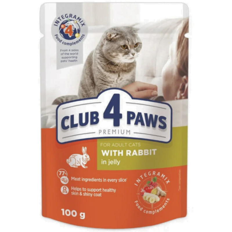 CLUB 4 PAWS Premium visavertis konservuotas maistas suaugusioms katėms su triušiena drebučiuose