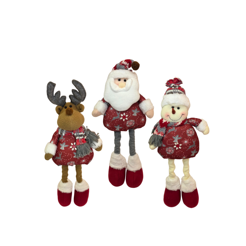 Kalėdinės figūrėlės – žaismingi ir šilti šventiniai personažai, kurie suteiks jūsų namams jaukumo bei šventinės nuotaikos. Kolekciją sudaro trys skirtingi personažai: Kalėdų senelis, elnias ir besmegenis – visi apsirengę raudonais žieminiais drabužiais su baltomis ir pilkomis detalėmis. Minkštos medžiagos ir kruopščiai siūtos detalės suteikia jiems išskirtinį žavesį. Figūrėlės turi ištraukiamas ir susitraukiančias kojas, todėl galima reguliuoti jų aukštį ir lengvai pritaikyti prie bet kurios erdvės.