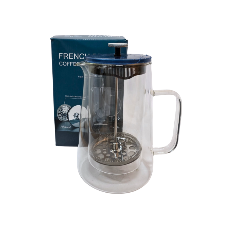 Talpus ir stilingas 1000 ml prancūziškas kavinukas puikiai tinka mėgstantiems ruošti didesnius kiekius kavos, arbatos ar žolelių užpilų. Pagamintas iš aukštos kokybės, karščiui atsparaus stiklo ir nerūdijančio plieno filtrų sistemos, kuri užtikrina švarų, sodrų gėrimo skonį. Patogi stiklinė rankena suteikia stabilumą pilant, o klasikinis dizainas dera bet kuriame interjere.