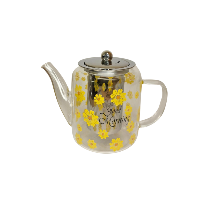 Žaismingas ir jaukus stiklinis arbatinukas, papuoštas ryškiomis geltonomis gėlėmis ir užrašu „Good Morning“, puikiai tinka tiek rytinei arbatai, tiek jaukiems dienos ritualams. Aukštos kokybės karščiui atsparus stiklas leidžia stebėti arbatos spalvos skleidimąsi, o nerūdijančio plieno sietelis sulaiko net smulkias arbatos daleles, kad gėrimas būtų švarus ir aromatingas.