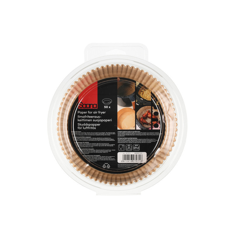 Vienkartiniai kepimo popieriaus įdėklai, skirti naudoti oro gruzdintuvėje. Jie padeda apsaugoti krepšelį nuo riebalų ir maisto likučių, todėl valymas tampa daug paprastesnis ir higieniškesnis. Pagaminti iš karščiui atsparaus, nelimpančio popieriaus, leidžia patiekalams kepti tolygiai ir neprarasti skonio. Tinka kasdieniam maisto ruošimui – bulvytėms, mėsai, žuviai, daržovėms ar kepiniams.