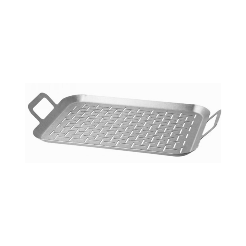 Tvirta ir praktiška grilio keptuvė, skirta patogiam kepimui ant grilio ar atviros ugnies. Perforuotas dugnas leidžia riebalams nutekėti, užtikrina tolygų karščio pasiskirstymą ir suteikia maistui autentišką grilio skonį. Šoninės rankenos leidžia saugiai ir patogiai perkelti keptuvę.