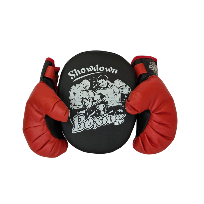 Profesionaliai atrodantis bokso rinkinys vaikams ar pradedantiesiems, puikiai tinkantis treniruotėms namuose ar lauke! Komplekte yra dvi bokso pirštinės ir taikinys (padas) smūgių lavinimui.