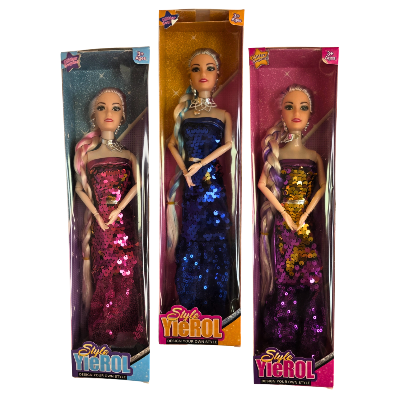 Lėlė „Style Yierol“ su blizgančia suknele