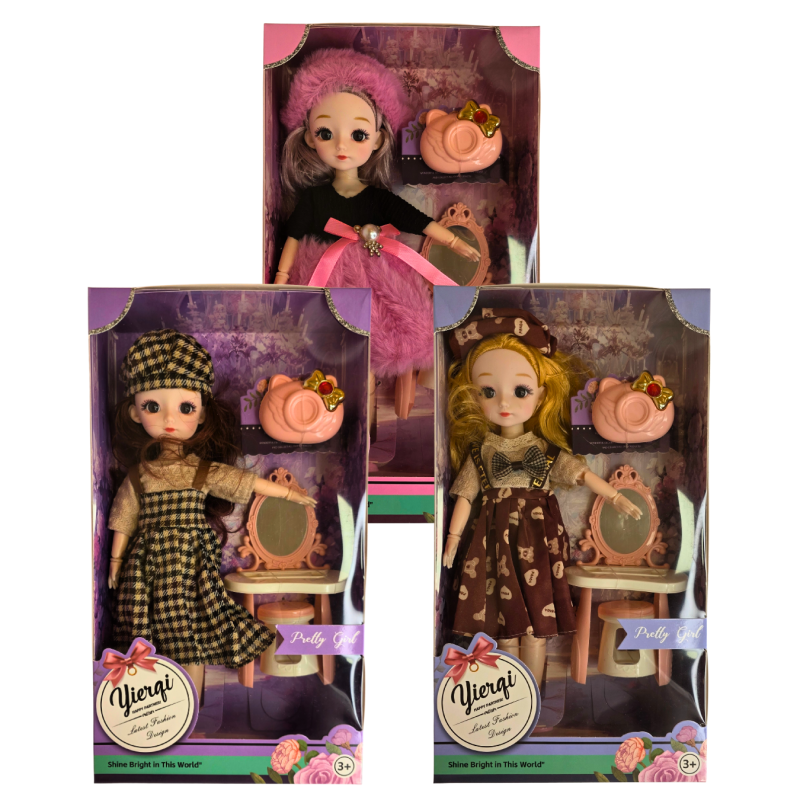 · Rinkinį sudaro: lėlė + staliukas su veidrodžiu + kėdutė + aksesuarai