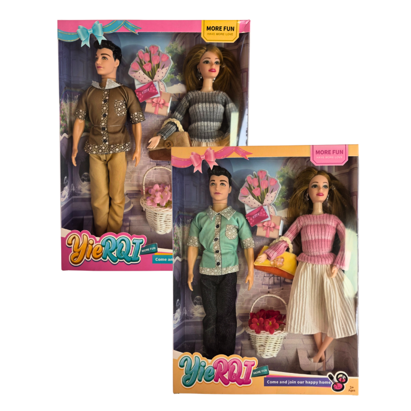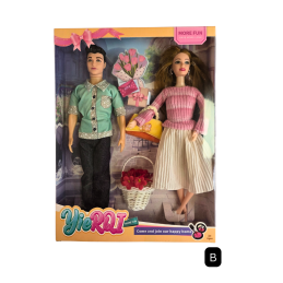 Stilinga lėlių pora su aksesuarais – puikus žaidimų rinkinys vaikams. Abi lėlės aprengtos madingais, derančiais drabužiais. Rinkinyje taip pat yra krepšelis su gėlėmis, kuris suteikia žaidimams dar daugiau įsivaizduojamos istorijos.