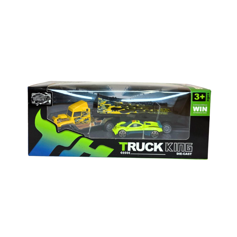 Šis žaislinis rinkinys patiks visiems mažiesiems automobilių entuziastams! Sunkvežimis su priekaba veža stilingą sportinį automobilį – galima žaisti lenktynes, transportavimą ar kurti naujas nuotykių istorijas. Ryškios spalvos ir liejimo metalo detalės suteikia žaislui patvarumo ir realistiškumo.