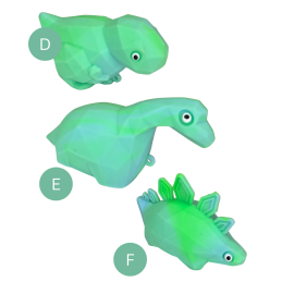 Pastaba: visi variantai turi tas pačias funkcines savybes – skiriasi tik spalva ir dinozauro forma.