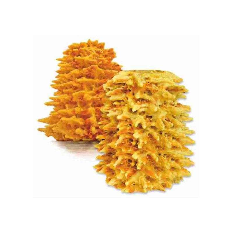 SUDEDAMOSIOS DALYS: KIAUŠINIAI, margarinas 82% riebumo (hidrinti augaliniai riebalai, rafinuotas saulėgrąžų aliejus, palmių riebalai, vanduo, druska, emulsikliai E471, E322 (sudėtyje yra SOJOS), dažiklis E160a, kvapioji medžiaga E270), KVIETINIAI miltai, GRIETINĖ, cukrus, vanilinis cukrus, druska, natūralus aromatas su dažikliais (aromatinės sudedamosios dalys, natūralios aromatinės medžiagos, kvapiųjų medžiagų ekstraktai. Kitos sudedamosios dalys: vanduo, gliukozės sirupas, invertuotas cukraus sirupas, etilo alkoholis, tikrštiklis: ksantanas, dažiklis: riboflavinas), druska, ciberžolė (sudėtyje gali būti SALIERŲ, GARSTYČIŲ, SEZAMO SĖKLŲ, PIENO ir jo produktų, GLITIMO TURINČIŲ JAVŲ ir jų produktų pėdsakų).