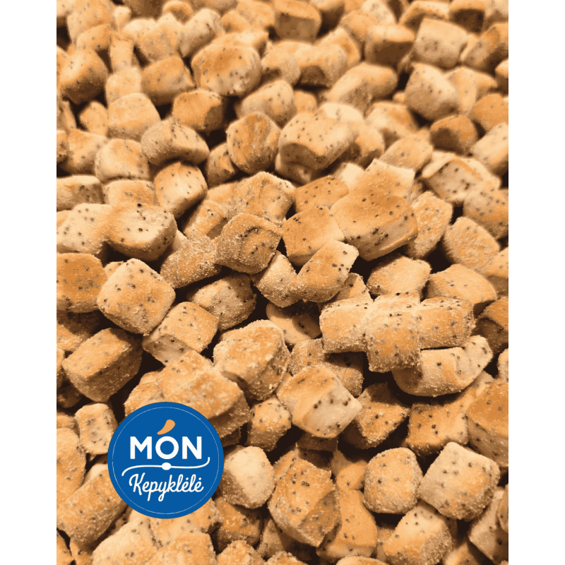 KVIETINIAI MILTAI, vanduo, cukrus, rapsų aliejus, aguonos, vanilinis cukrus (cukrus 97.8%, vanilinas 2.92%), sausos mielės (mielės,emulsiklis E491).,joduota druska.