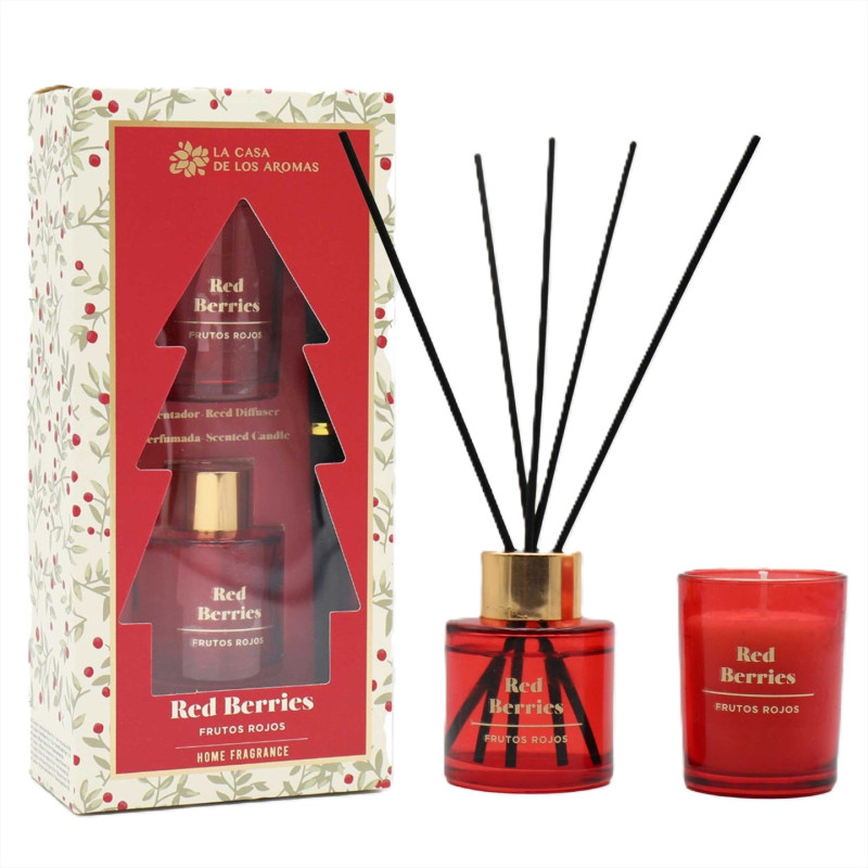 Raudonų uogų kvapo rinkinį sudaro: namų kvapas (50 ml), kvapnioji žvakė (50 g).