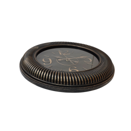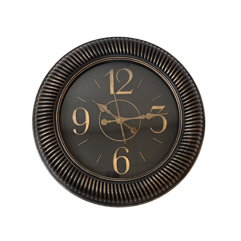 Elegantiškas ir prabangiai atrodantis sieninis laikrodis su tamsiu ciferblatu ir auksinės spalvos skaičiais bei rodyklėmis. Reljefinis rėmelis suteikia laikrodžiui išskirtinį charakterį, o kontrastingos spalvos užtikrina puikų matomumą. Tai stilingas interjero akcentas, puikiai tinkantis tiek klasikiniam, tiek moderniam stiliui.