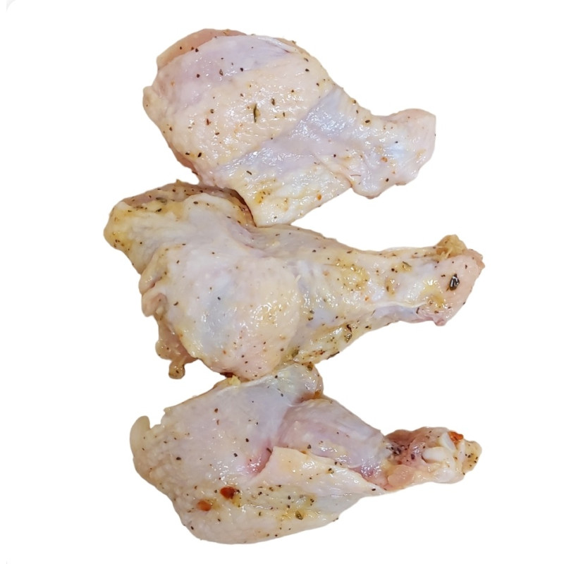 SUDEDAMOSIOS DALYS: viščiukų broilerių peteliai 94%, marinolis "Lemon-Pfeffer" - halal (Augalinis aliejus (rapsų), augaliniai riebalai (rapsų, Sal. (šorėjų) sviestas įvairiomis dalimis), jūros druska, prieskoniai (pipirai, svogūnai, paprikos, ciberžolė), cukrus, natūralios kvapiosios medžiagos, čiobreliai.