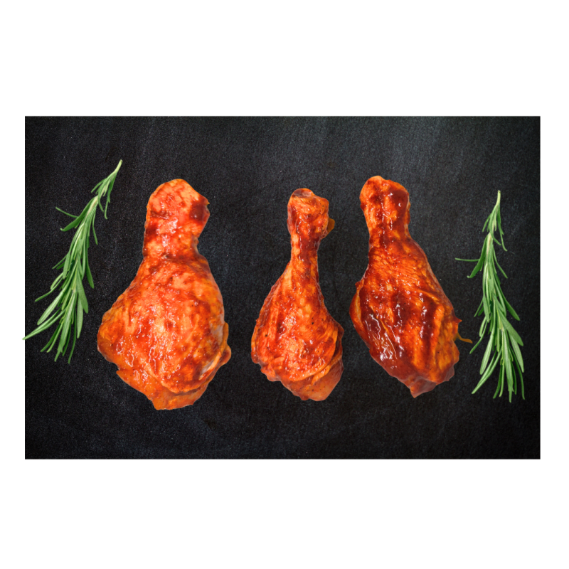 viščiukų broilerių blauzdelės, marinolis "Grillbutter" (augalinis aliejus (rapsų), augaliniai riebalai (iš dalies hidrinti palmių, visiškai hidrinti rapsų (0,7-3,0%)), joduota valgomoji druska (18,2%), prieskoniai (karis, svogūnai, muskatas ir kt.), cukrus (3%), kvapiosios medžiagos, gliukozės sirupas, mielių ekstraktas, dekstrozė (2%), prieskoniniai augalai (petražolės, porai).