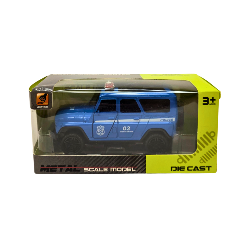Tvirtas ir stilingas metalo lydinio policijos visureigis su atidaromomis durelėmis ir realistinėmis detalėmis. Puikiai tinka mažiesiems transporto ir policijos gerbėjams!