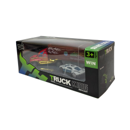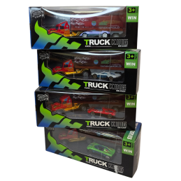 Įspūdingas vilkiko ir sportinio automobilio rinkinys – puikus žaislas mažiesiems automobilių mėgėjams! Vilkikas pasižymi tvirta konstrukcija, ryškiomis spalvomis ir liepsnos dizaino detalėmis, o sportinis automobilis atrodo kaip tikras lenktynių bolidas.