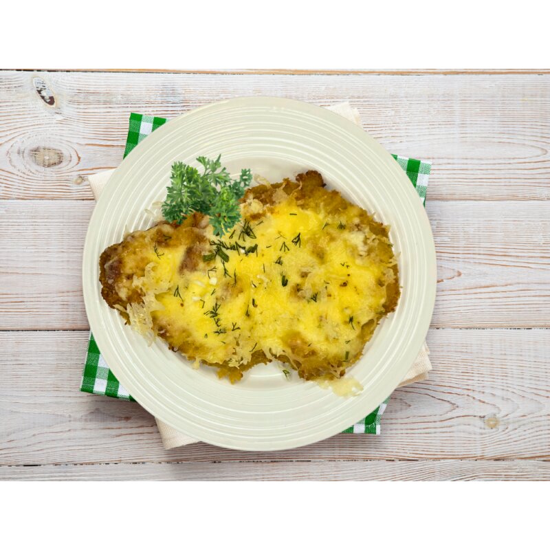 kiaulienos nugarinė, barstiniai (KVIETINIAI MILTAI, mielės, valgomoji druska), KIAUŠINIAI, majonezas tradicinis((vanduo,rapsų aliejus (35%), modifikuotas bulvių krakmolas, cukrus, druska,KIAUŠINIŲ TRYNIŲ MILTELIAI su gliukozės sirupu, modifikuotas kukurūzų krakmolas, rūgštingumą reguliuojančios medžiagos (acto ir citrinų rūgštys), stbilizatorius (akacijų ir ksantano dervų mišinys), GARSTYČIŲ kvapioji medžiaga, konservantai: kalio sorbatas, natrio benzoatas), rafinuotas,dezodoruotas rapsų aliejus, česnakai, universalus prieskonių mišinys ((valgomoji druska, pastarnokai, morkos, svogūnai, petražolės, česnakai, ciberžolės, porai, imbierai, paprika, cukrus, maltodekstrinas), joduota druska, juodieji malti pipirai. 100g. produkto maistingumas.