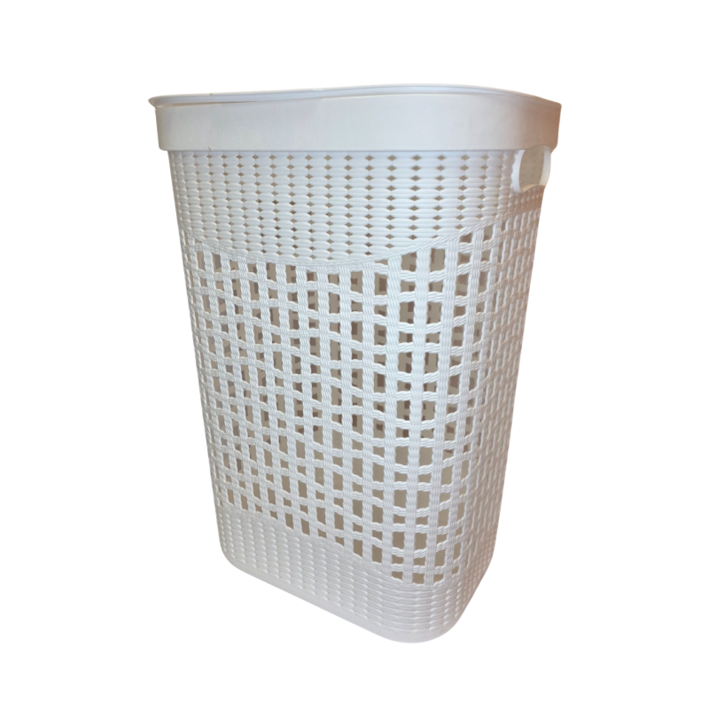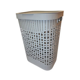 Talpus ir funkcionalus plastikinis skalbinių krepšys su pintos faktūros dizainu. Krepšys turi dangtį, kuris padeda išlaikyti tvarką ir paslėpti skalbinius nuo akių. Dėl vėdinimo angų užtikrinama gera oro cirkuliacija, todėl skalbiniai išlieka gaivūs. Patogios rankenos leidžia lengvai nešti krepšį.