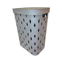 Talpus ir stilingas plastikinis skalbinių krepšys su dangčiu, dekoruotas rombais. Dėl dekoratyvinių angų užtikrinama gera oro cirkuliacija, todėl skalbiniai išlieka gaivūs. Patogios šoninės rankenos leidžia lengvai pernešti krepšį. Puikiai tinka naudoti vonios kambaryje ar skalbykloje.