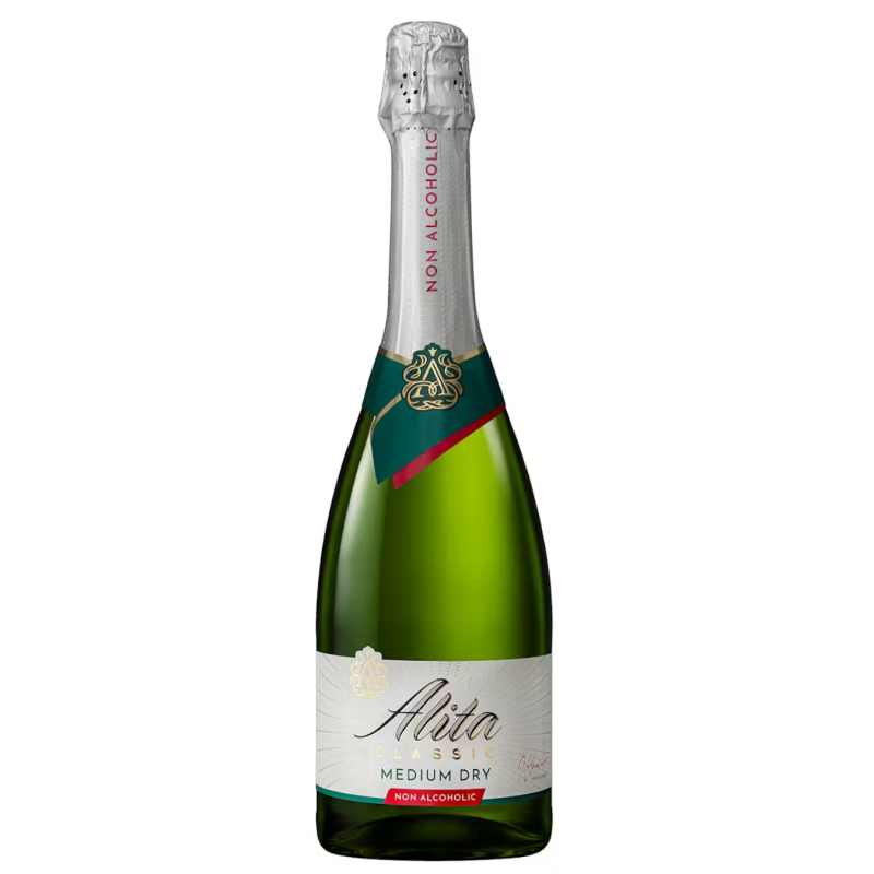 Alita Classic Medium Dry 0,0 % – gazuotas putojantis nealkoholinis vynas, pusiau sausas, skirtas ieškantiems elegantiškos ir gaivios alternatyvos be alkoholio. Pagamintas iš Pietų Europos regiono vynuogių vyno, iš kurio specialia įranga pašalintas alkoholis, išsaugant natūralų vynuogių charakterį.