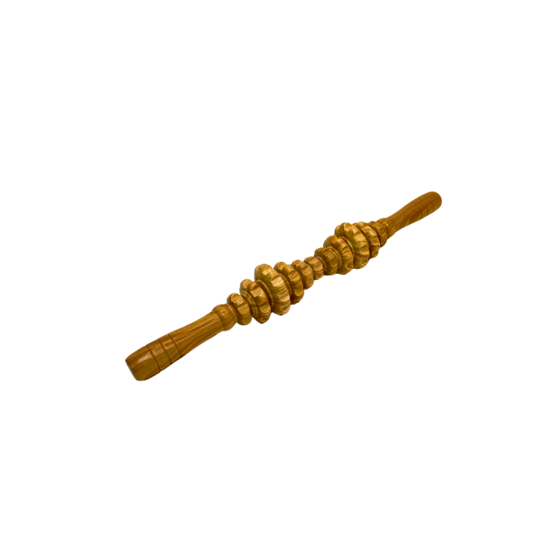 Natūralus medinis masažo volas su profiliuotais, skirtingo dydžio ratukais – puikus pasirinkimas raumenų atpalaidavimui ir kraujotakos gerinimui. Patogios rankenos leidžia lengvai masažuoti kojas, nugarą, rankas ar kaklą. Tinka naudoti namuose kasdieniam atsipalaidavimui.