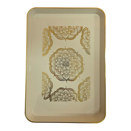 Elegantiškas stačiakampis padėklas su prabangiu auksiniu ornamentu – stilingas pasirinkimas tiek kasdieniam naudojimui, tiek šventiniam stalui. Dailus raštas suteikia rafinuotumo, o aukso spalvos krašteliai pabrėžia išskirtinį dizainą.