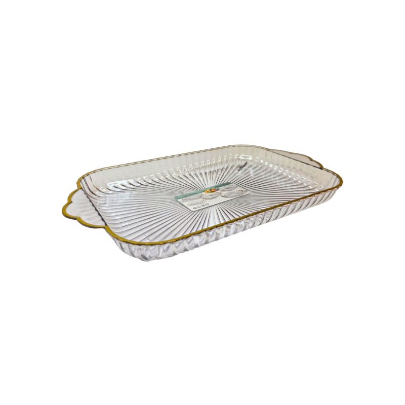 Išskirtinio dizaino plastikinis padėklas – elegantiškas ir praktiškas pasirinkimas jūsų stalui. Skaidrus paviršius ir subtilus auksinis kraštelis suteikia prabangos įspūdį, todėl šis padėklas puikiai tinka tiek kasdieniam naudojimui, tiek šventiniam serviravimui.