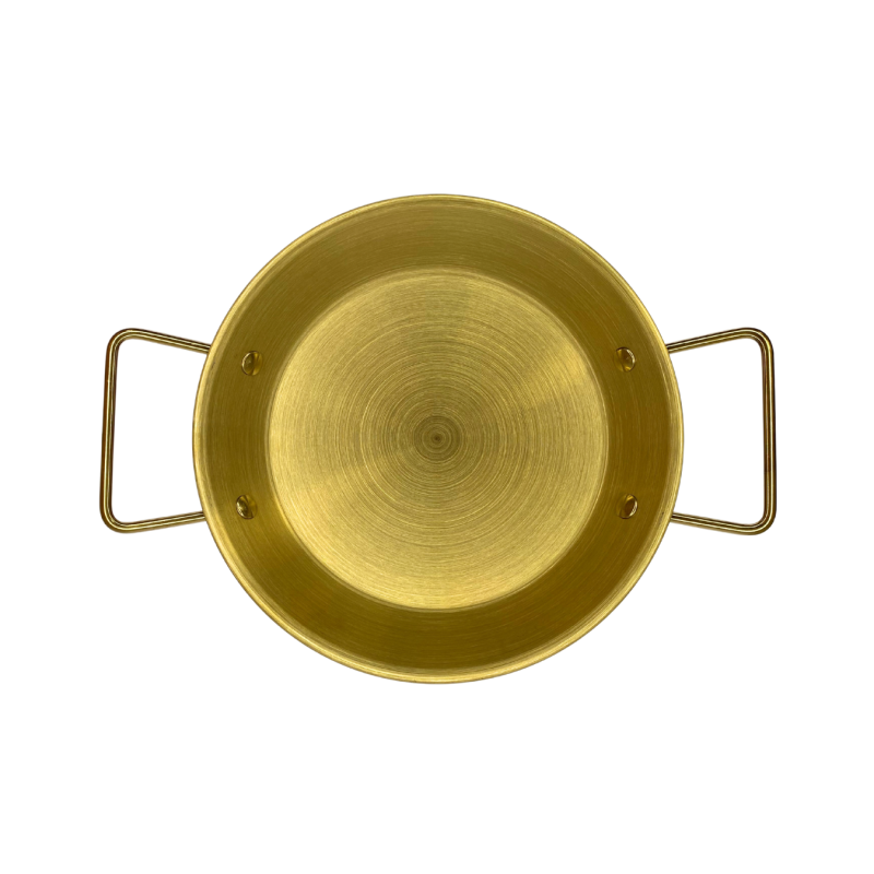 Stilinga ir tvirta metalinė lėkštė su dviem patogiomis rankenomis – puikus pasirinkimas serviravimui, užkandžiams, desertams ar dekorui. Auksinė spalva suteikia prabangos įspūdį, todėl ši lėkštė puikiai dera prie šventinio ar moderniai įrengto stalo.