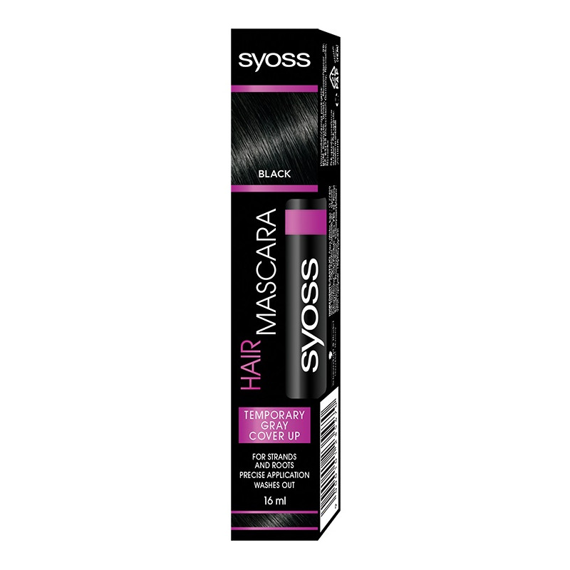 Juodas tušas plaukams su precizišku šepetėliu paslepia žilas plaukų sruogas ir šaknis. Dažai nusiplaunantys- išlieka iki pirmo galvos trinkimo šampūnu. Pakuotėje yra 1 plaukų tušo buteliukas su šepetėliu 16ml, 1 naudojimo instrukcijos lankstinukas.