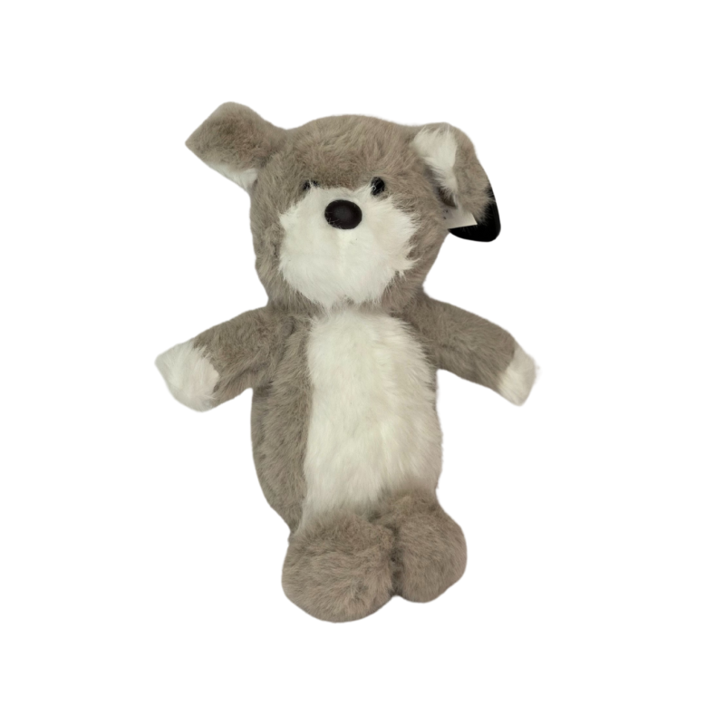– Modelis 2: kompaktiškas pilkas žaislas su balta krūtine, apvalesne galvos forma ir rudu, pūkuotu snukučiu.