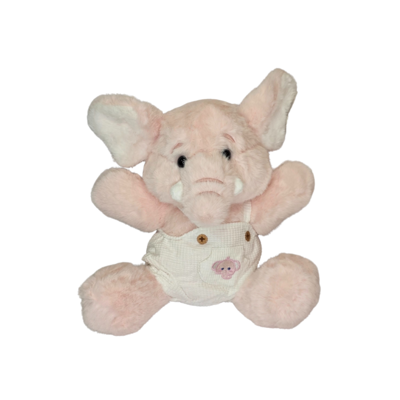 Mielas, švelnus ir itin jaukus rožinis pliušinis drambliukas, apsirengęs baltos spalvos šortukais su miela siuvinėta aplikacija. Šis žaislas puikiai tinka vaikams, kolekcionuotojams arba kaip jauki dovana bet kokiai progai. Didelės ausys, švelnus kailiukas ir išraiškingos akys sukuria žavingą ir draugišką įvaizdį.