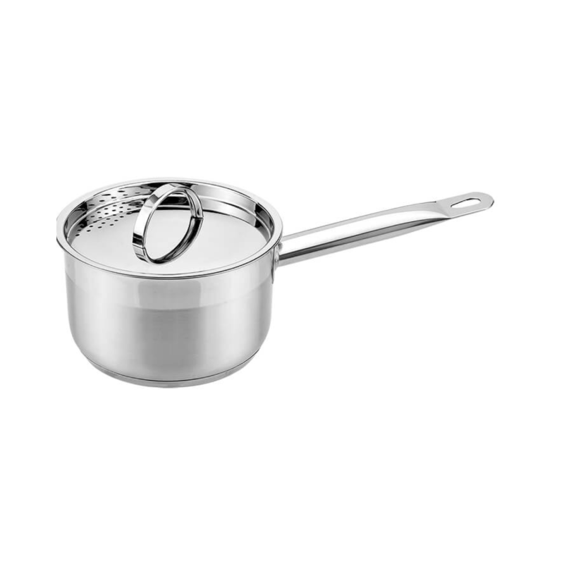 Prikaistuvis pagamintas iš kokybiško metalo, kuris užtikrina tolygų šilumos pasiskirstymą ir ilgaamžiškumą. Komplekte esantis dangtis su skylutėmis leidžia patogiai nupilti skysčius, o ilga rankena suteikia saugumo ir komforto gaminant. Lengvai valomas ir atsparus kasdieniam naudojimui.