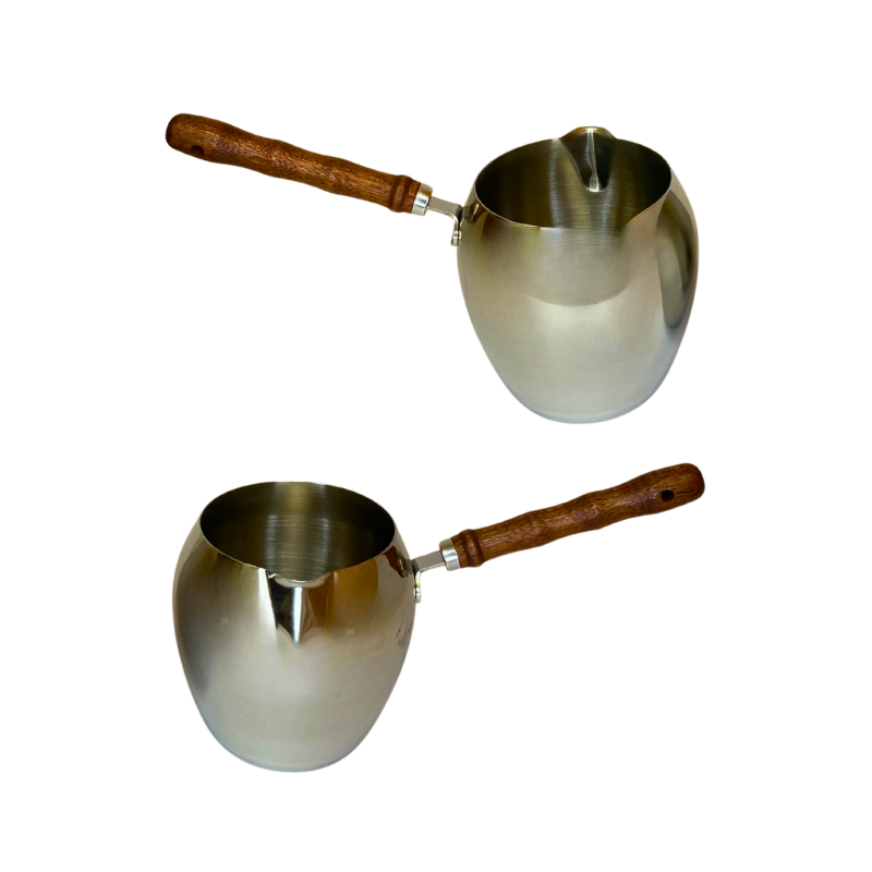 Kokybiški metaliniai prikaistuvai, pagaminti iš nerūdijančio plieno, su patogiomis natūralaus medžio rankenomis. Skirti vandeniui ar kitiems skysčiams šildyti ir pilti. Turi snapelį tiksliam ir patogiam pylimui.