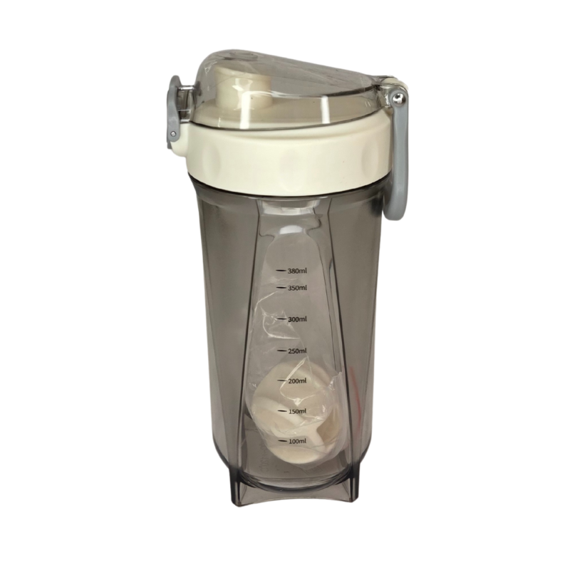 Patogus ir stilingas sportinis butelis su vidiniu plakimo rutuliuku – puikus pasirinkimas baltymų kokteiliams, kokteiliams ar kitų gėrimų maišymui. Sandarus dangtelis su užsegimu užtikrina, kad gėrimas neišsilies, o ergonomiška forma leidžia patogiai laikyti rankoje. Skaidrus butelio korpusas su matavimo skalėmis padeda lengvai dozuoti ingredientus.