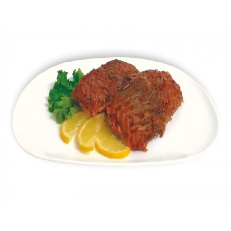 SUDEDAMOSIOS DALYS: Atlantinių LAŠIŠŲ (Salmo salar) mėsa 92,2% (lašišų mėsa 89,2%, bulvių krakmolas, modifikuotas krakmolas, SOJOS baltymų izoliatas, stabilizatorius E407, rūgštingumą reguliuojančios medžiagos E331, E451, antioksidantai E301, E330, E316, gliukozės sirupas, prieskoniai (paprikos, česnakai, svogūnai, kalendra), tirštiklis E407a, emulsiklis E471, aromato ir skonio stipriklis E621, gyvūniniai baltymai, juodųjų pipirų ekstraktas, kvapiosios medžiaga, mielių ekstraktas, lipnumą reguliuojanti medžiaga E508), morkos 4 %, valgomoji druska, prieskonių mišinys.