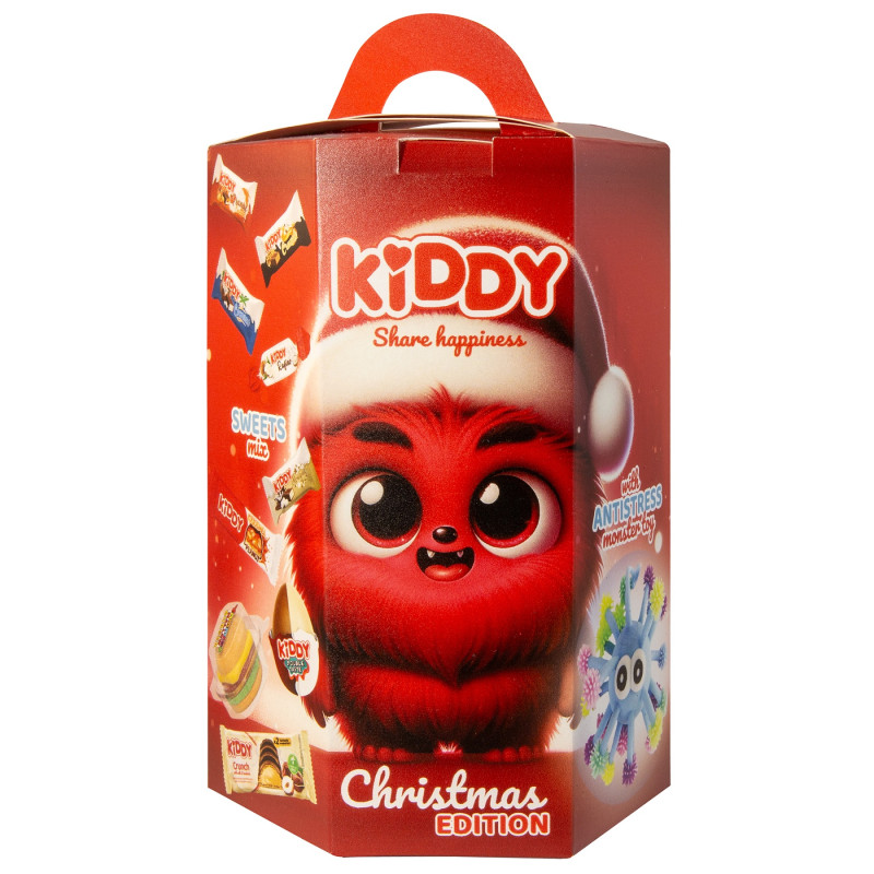 Sudedamosios dalys: pieninio šokolado glaistas (cukrus, kakavos sviestas, nenugriebto pieno milteliai, kakavos masė, nugriebto pieno milteliai, kakavos sviesto ekvivalentas (alyvpalmių aliejus, sviestmedžių aliejus), emulsikliai: lecitinai (sojų), E476; vanilės kvapioji medžiaga), cukrus, gliukozės sirupas, skrudinti žemės riešutai, kokosų drožlės, konditeriniai riebalai (rafinuotas, dezodoruotas alyvpalmių sėklų ir alyvpalmių aliejus, antioksidantai: E320, E321), pieno riebalų pakaitalas (rafinuoti ir dezodoruoti augaliniai riebalai ir aliejai: alyvpalmių aliejus ir jo frakcijos, saulėgrąžų aliejus, kokosų aliejus natūralioje ir transesterifikuotoje formoje, emulsiklis E471, antioksidantai: E320, E321), nugriebto pieno milteliai, kvietiniai miltai, saulėgrąžų aliejus (saulėgrąžų aliejus, antioksidantai: E304, E306), grietinėlės skonio rutuliukai(kukurūzų kuopos, cukrus, kvietiniai miltai, gliukozės sirupas, ruginiai miltai, avižiniai miltai, ryžių miltai, druska, saulėgrąžų aliejus, vanilinės grietinėlės kvapioji medžiaga, stabilizatorius riebalų rūgščių mono- ir digliceridai), glaistyti kukurūzų rutuliukai (kukurūzų kruopos, kvietiniai miltai, cukrus, gliukozės sirupas, saulėgrąžų aliejus, stabilizatorius riebalų rūgščių mono- ir digliceridai), konditeriniai riebalai (rafinuotas, dezodoruotas įvairiomis dalimis alyvpalmių aliejus ir jo frakcijos, emulsiklis lecitinai. (saulėgrąžų), antioksidantai: E304i, E306), nenugriebto pieno milteliai, kukurūzų krakmolas (sudėtyje yra sieros dioksido ir sulfitų), išrūgų milteliai, druska, miežių salyklo ekstraktas drėgmę išlaikančios medžiagos: sorbitolis, glicerolis; emulsiklis lecitinai (sojų), kiaušinių baltymų milteliai, grietinėlės milteliai, tirštiklis karageninas, kvapiosios medžiagos, natūralios kvapiosios medžiagos: vanilės, kokosų; stabilizatorius riebalų rūgščių mono- ir digliceridai, rafinuotas, balintas ir dezodoruotas alyvpalmių aliejus, rūgštingumą reguliuojančios medžiagos: natrio hidrokarbonatas, pieno rūgštis; laktozė. Gali būti kitų riešutų pėdsakų. Zefyras. Sudedamosios dalys: cukrus, kukurūzų sirupas, vanduo, dekstrozė, kukurūzų krakmolas, rūgštys: citrinų rūgštis, obuolių rūgštis, vyno rūgštis, natrio citratai: želatina, kvapiosios medžiagos, dažikliai: E129, E102, E133, E153, E163. E129, E102: gali neigiamai paveikti vaikų aktyvumą ir dėmesį. Vaflis su pieno ir lazdynų riešutų įdaru (55,6%), padengtas pieniniu šokoladu (31,6 %). Sudedamosios dalys: pieninis šokoladas (cukrus, kakavos sviestas, nenugriebto pieno milteliai, kakavos masė, išrūgų milteliai (iš pieno), emulsikliai: lecitinai (rapsų), E476; kvapioji medžiaga), cukrus, kvietiniai miltai, sviestmedžių riebalai, lazdynų riešutų minkštimas (10,4 %), nenugriebto pieno milteliai (8,7%), laktozė (4,4%), rapsų aliejus, bulvių krakmolas, kvapiosios medžiagos, emulsiklis lecitinai (rapsų), liesi kakavos milteliai, druska, tešlos kildymo medžiaga natrio hidrokarbonatas. Gali būti žemės riešutų, kitų riešutų, kiaušinių, sezamo sėklų ir sojų. Pieninio ir baltojo šokolado kiaušinis su siurprizu. Sudedamosios dalys: cukrus, kakavos sviestas, nenugriebto pieno milteliai, kakavos masė, išrūgų milteliai, emulsiklis lecitinai (sojų), kvapioji medžiaga. Sudėtyje gali būti RIEŠUTŲ pėdsakų. Kakavos sausųjų medžiagų - ne mažiau kaip 29 %.